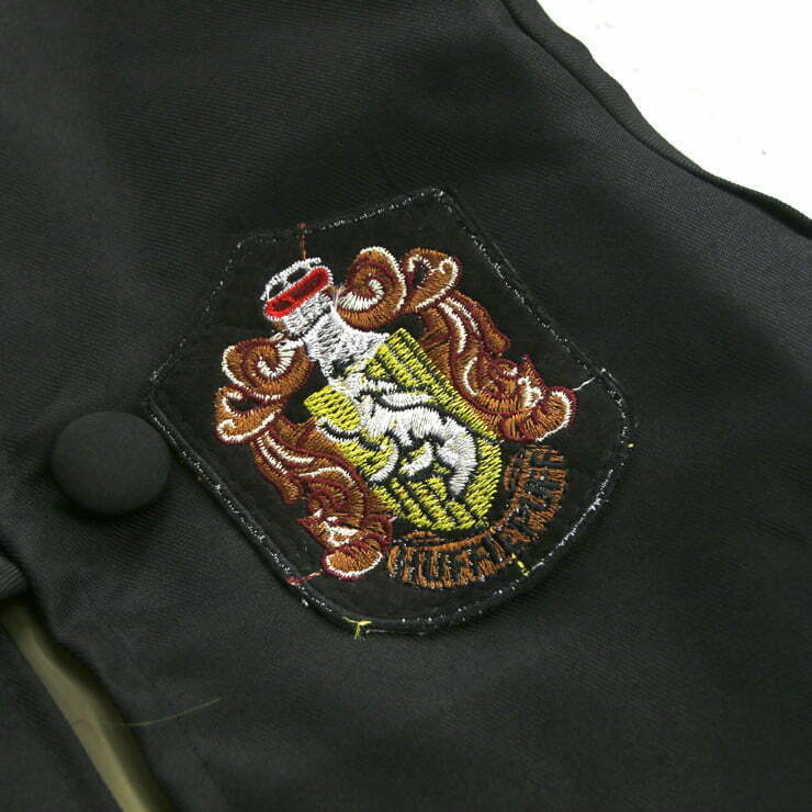 תחפושת הקוסמים הארי פוטר כוללת: גלימה שחורה מעוטרת בתג וחלק פנימי צהוב המייצגים עבודה קשה, סבלנות, צדק ונאמנות. מגיע עם עניבת רצועות אדום-צהוב.