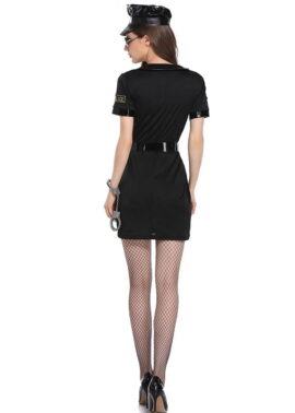 שמלת שוטרת קצרה ושחורה עם חגורה מבריקה וכובע
